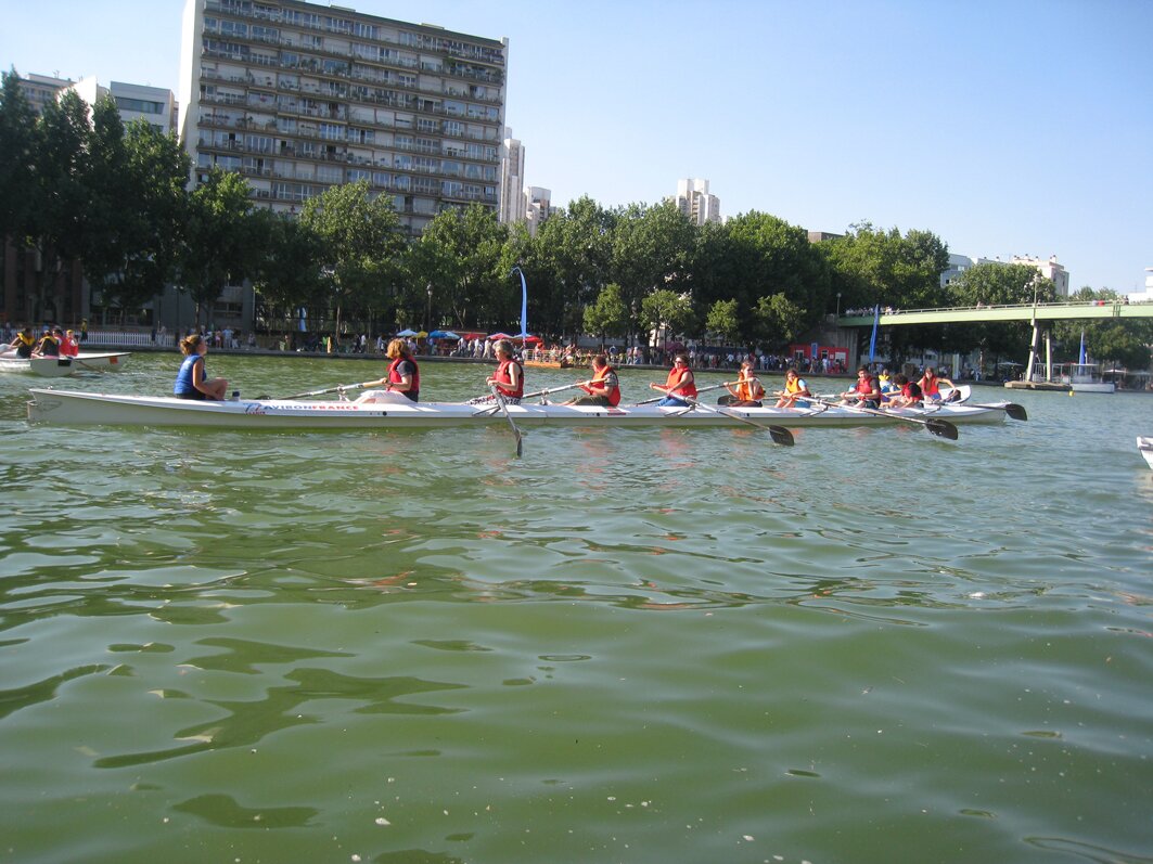 Parigi non può essere morta perché gli argini dei canali si trasformano in terrasses dei café, in luoghi da pic-nic, in campi da bocce, in mercatini serali, e le loro acque così calme sono terreno di sfida in canoa.